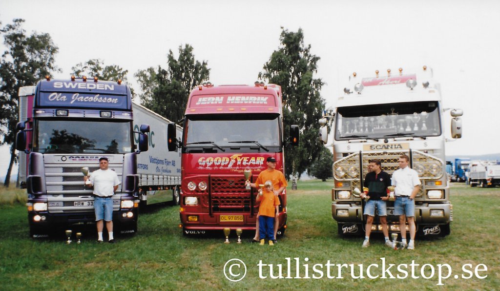 NORDIC TROPHY 1996 augusti 1996Elmia, Jönköping 1:a pris Bästa Specilabil Specialbilsklassen 3 glada pristagare i specialbilsklassen. Vinnare Nordic Trophy 1996 Volvo FH12 DragbilFörare och ägare: Henrik Guldager, Danmark Galleri